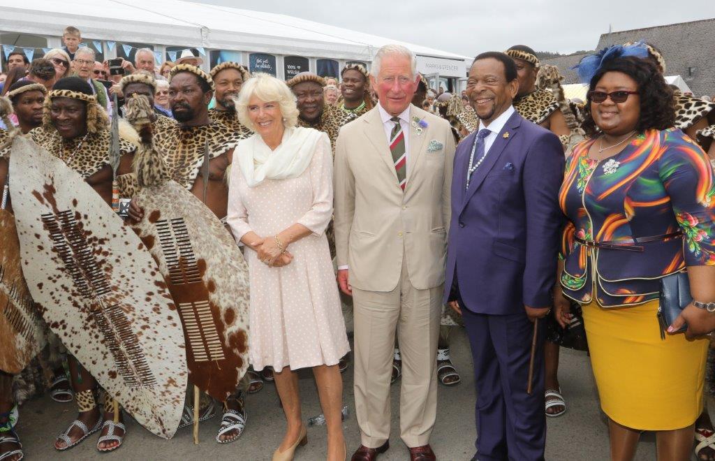 Accompanied by a group of members of the Zulu Regiment performing a traditional Impi warrior dance, King Goodwill and Queen Pumi met The Prince of Wales and The Duchess of Cornwall whilst at the Royal Welsh Show, before embarking on their own busy itinerary.